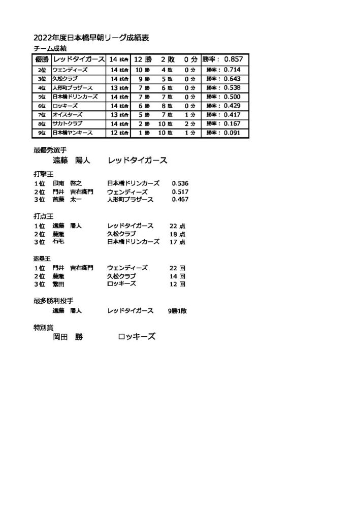 © 2025 日本橋早朝野球リーグ