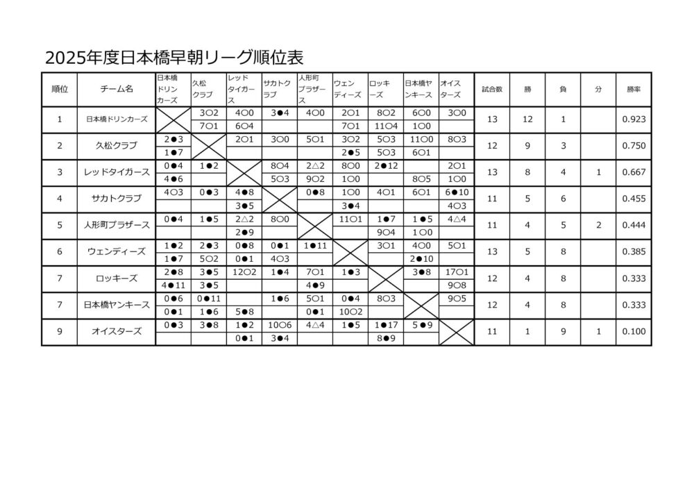 © 2025 日本橋早朝野球リーグ