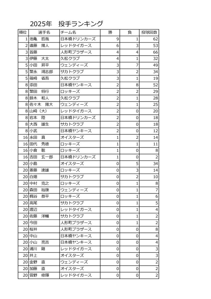 2025年度総合成績(投手)