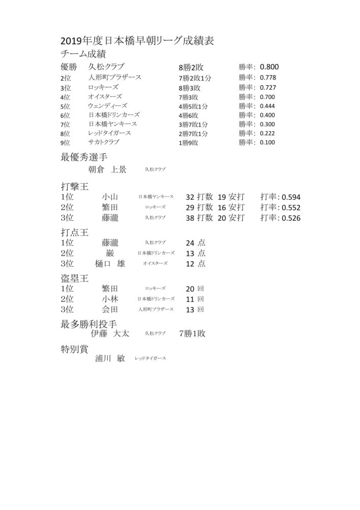 © 2025 日本橋早朝野球リーグ